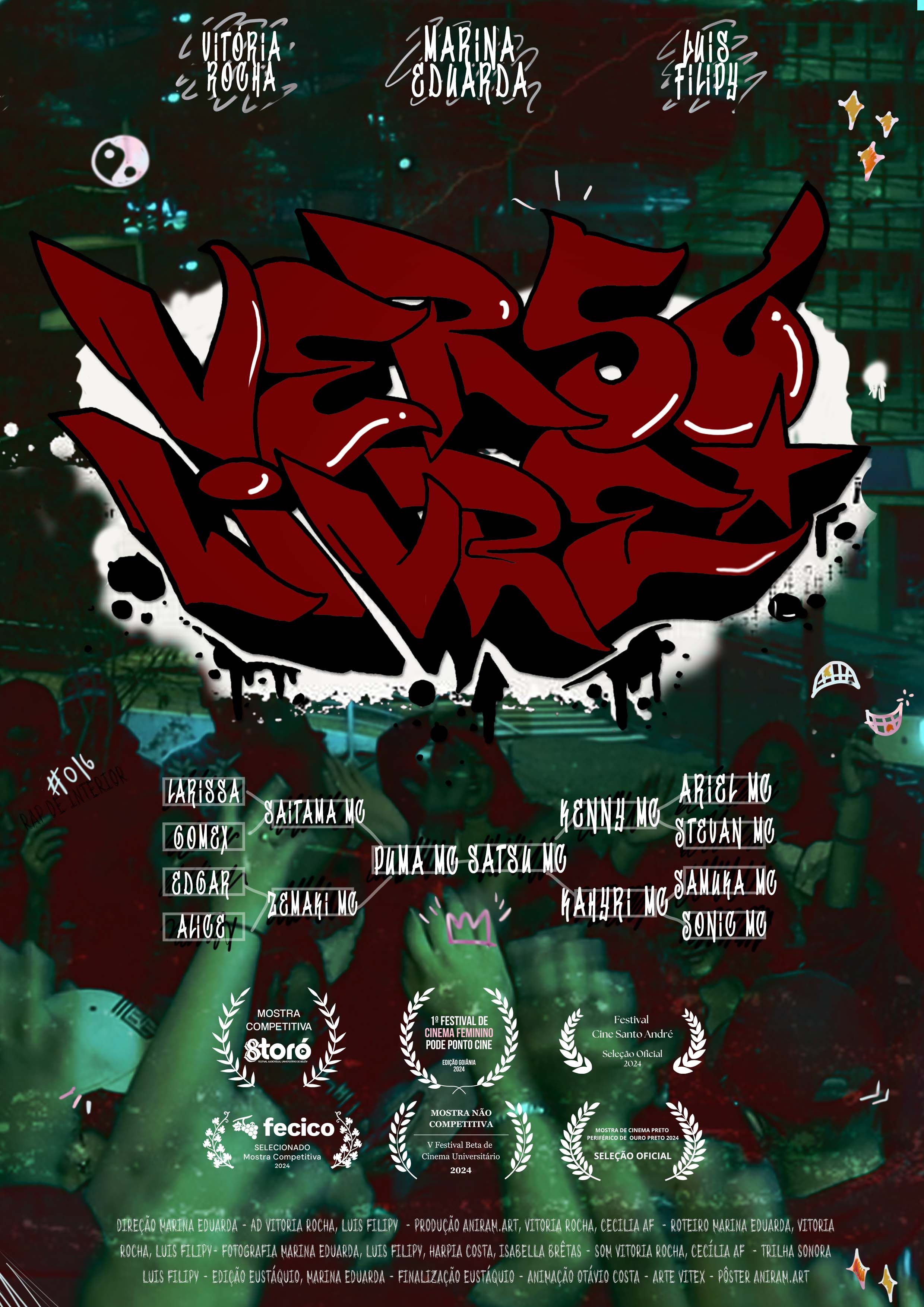 AniraM: Nossas dificuldades foram principalmente na questão dos espaços. Fizemos um curta de 20 minutos justamente por ser o tempo médio aceito em mostras, mas, ainda assim, foi difícil pela temática. Mesmo com o tema “em alta”, o cinema ainda é um ambiente muito hostil quando se trata de cultura de rua. Apesar dos muitos “nãos”, conseguimos levar o filme para vários lugares do país. Para nós, sendo a primeira vez inscritas em editais e festivais, e fazendo tudo de forma independente, foi ainda mais especial. Além das exibições em escolas, eventos de hip hop e praças da cidade, participamos de: 1º Festival de Cinema Feminino Pode Ponto Cine; 1º FECICO – Festival de Cinema de Colombo; V Festival Beta – Prêmio de Audiovisual Universitário ESPM; 8º Festival Toró – Audiovisual Universitário de Belém; 2ª Mostra de Cinema Preto Periférico de Ouro Preto; Festival Cine Santo André 2024; e tivemos espaço no 1º Fazimento de Cena, primeiro festival de cinema de São Carlos, onde pude participar de um debate sobre o processo do filme. Encerramos o ciclo na Expo Favela Brasil 2024, da melhor maneira possível. Assim como a rima, o “Verso Livre” é livre em suas métricas e caminhos. Entrou em lugares onde talvez não esperassem ver a gente, mas estamos lá, e continuaremos.