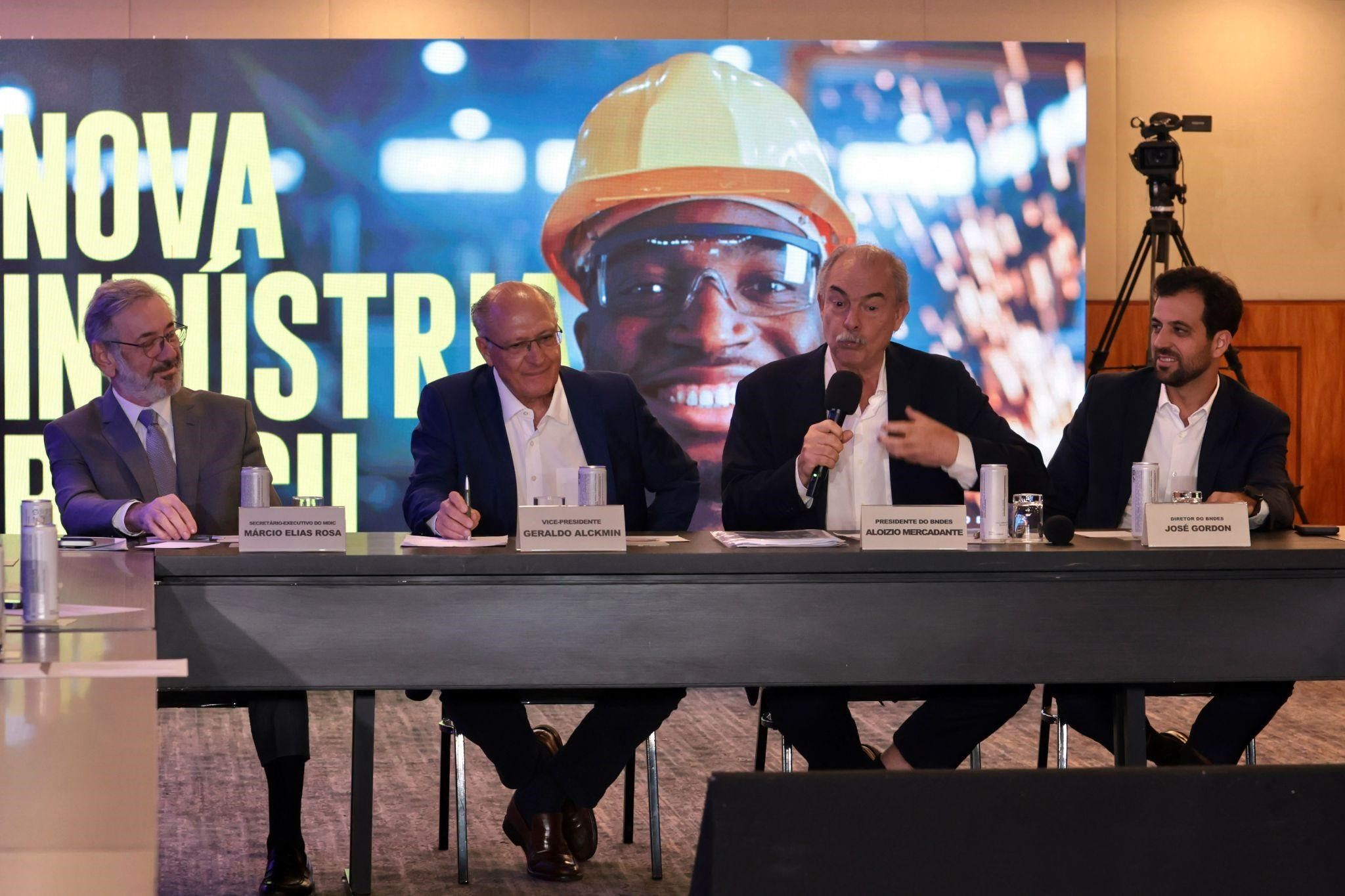 Vice-Presidente da República, Geraldo Alckmin, e o presidente do BNDES, Aloízio Mercadante, durante coletiva à imprensa para apresentar os novos investimentos na Nova Indústria Brasil. Reprodução/Foto: Paulo Pinto/Agência Brasil.