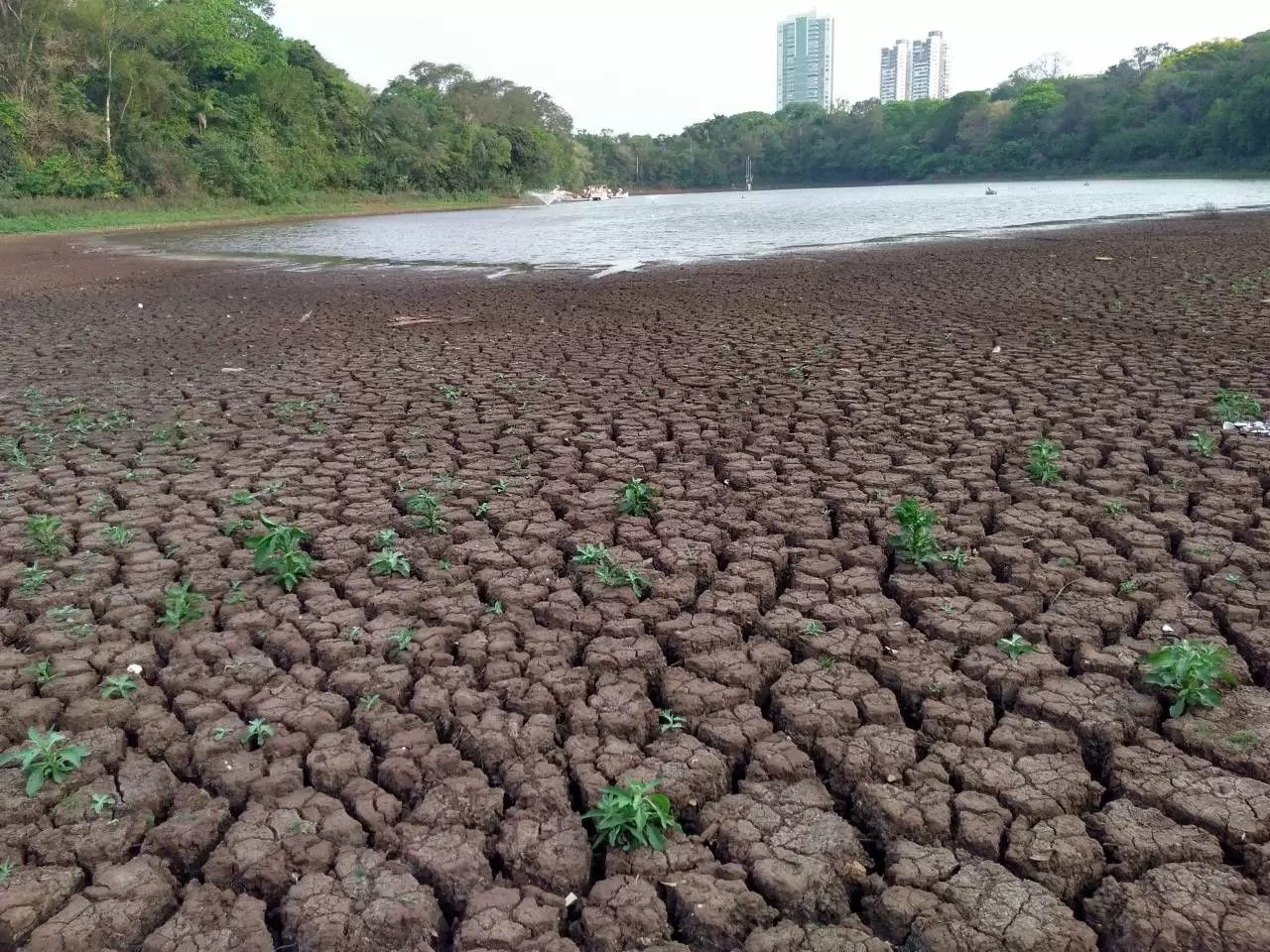 Registro da seca do lago no parque, em 2021. Reprodução/Foto: O Maringá.