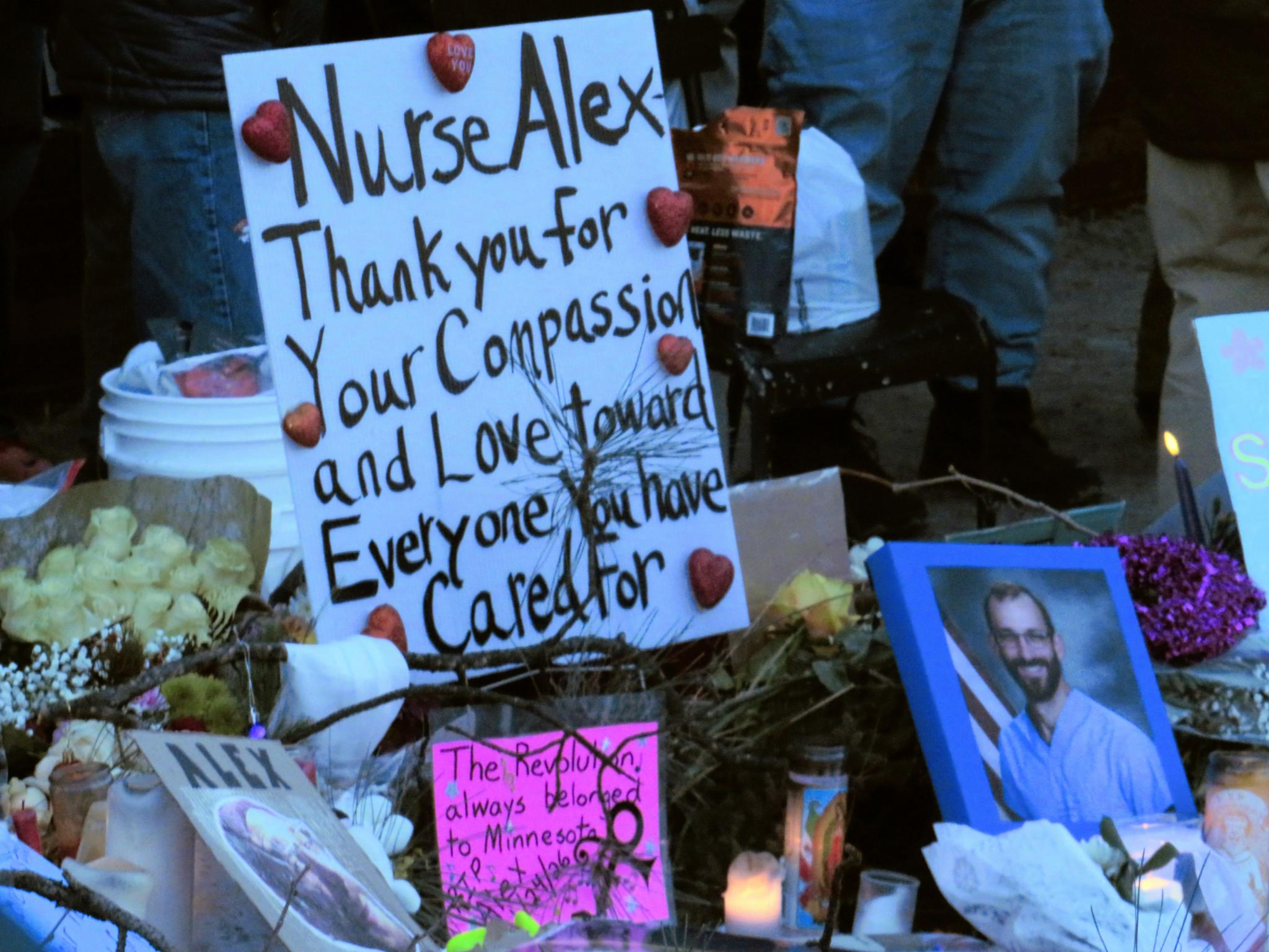 Cartazes, flores e velas no memorial para Alex Pretti. Foto: Jornal O Futuro.