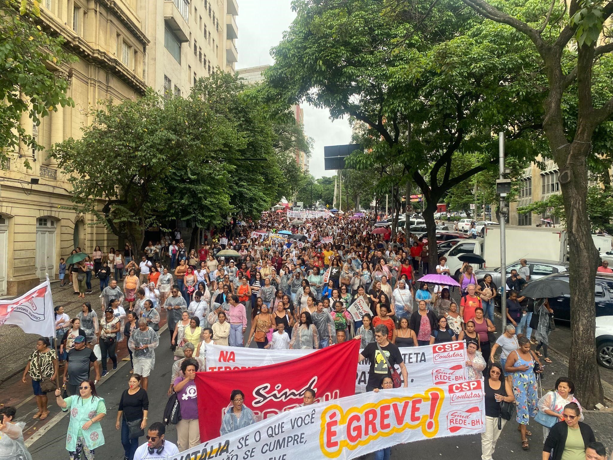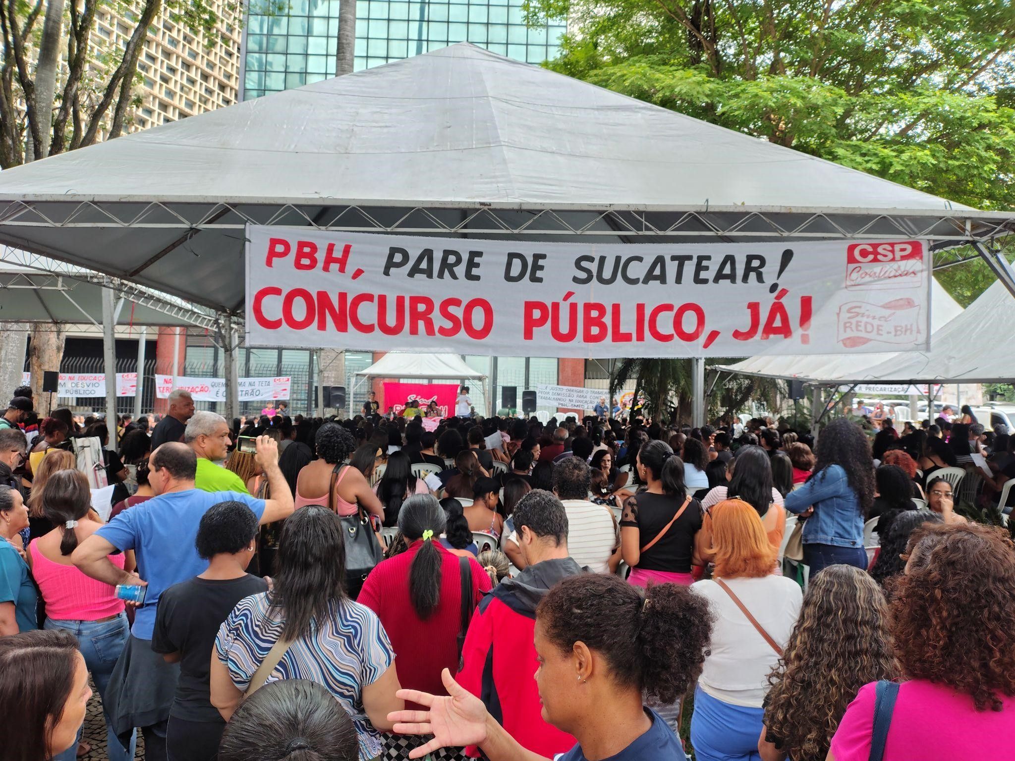 Trabalhadores terceirizados pela empresa MGS que atuam na rede municipal de educação de Belo Horizonte aprovaram o início de uma greve nesta segunda-feira (23), em assembleia convocada pelo Sind-REDE/BH na Praça Afonso Arinos, contando com cerca de 1.500 trabalhadores. Após a deliberação, os trabalhadores seguiram em manifestação até a Prefeitura, ocupando a Av. Afonso Pena. O movimento vem se desenhando desde a assembleia da categoria em 29 de janeiro, quando o indicativo de greve foi deliberado.