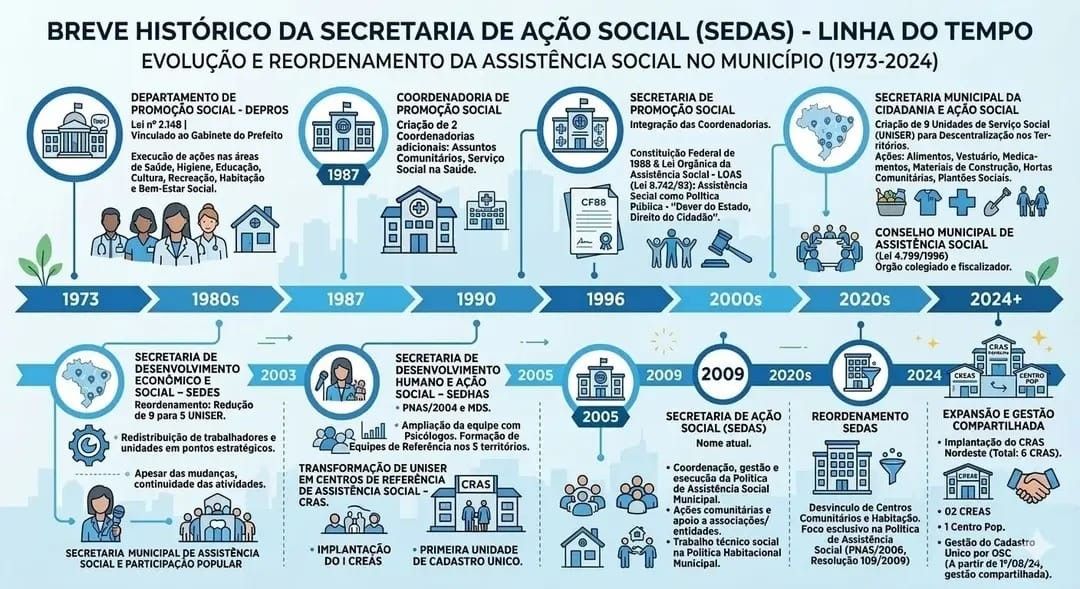 Depois da virada de milênio, ainda mais avanços foram conquistados, tanto em decorrência da organização e mobilização da classe trabalhadora contra as medidas regressivas do governo neoliberal de Fernando Henrique Cardoso quanto das políticas de “capitalismo humanizado” do governo de Lula. Dentre esses avanços, houve a ampliação da equipe de psicólogos e a implementação da primeira unidade tanto do CREAS quanto do Cadastro Único. Em 2005, a Secretaria de Ação Social (SEDAS) finalmente assume o nome que possui atualmente.