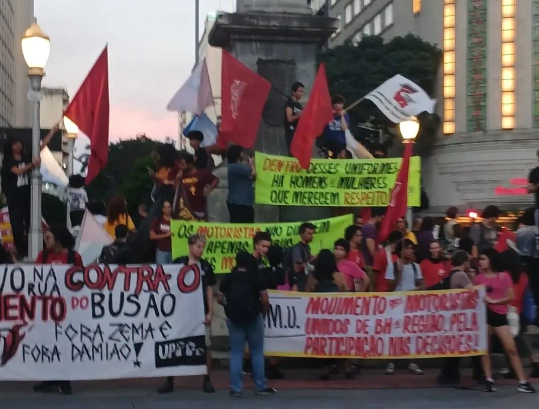 Na sexta-feira (09/01), trabalhadores e estudantes foram às ruas protestar contra os aumentos de passagem de Belo Horizonte para R$6,25, de Contagem para R$6,75 e da Região Metropolitana para, pelo menos, R$6,10. A manifestação foi organizada pela Frente Popular pelo Transporte Coletivo e contou com a presença de motoristas que se organizam no Movimento de Motoristas Unidos (MMU), que também reivindicam um melhor reajuste salarial. Além da rejeição aos aumentos e a defesa da melhoria das condições dos motoristas, os manifestantes também defenderam a tarifa zero universal em todos os dias da semana e a estatização dos serviços de transporte na RMBH.