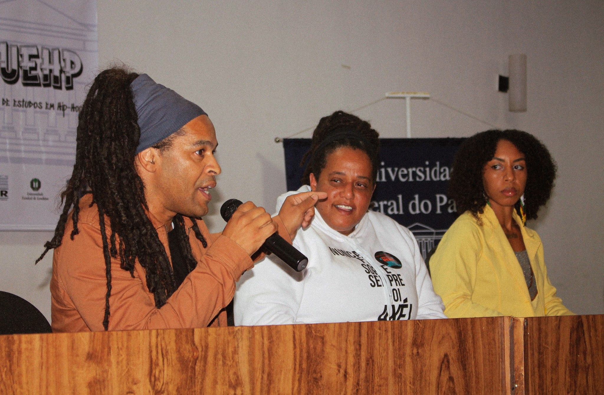 A coordenação do NUEHP, ela é composta por artistas acadêmicos, pessoas que estão no movimento e estão dentro da universidade, porque para nós, nesse momento de institucionalização é muito importante ater protagonismo acadêmico até pra conseguir justificar que o nosso projeto, porque ele precisa se tornar um projeto de extensão. Então, a princípio, temos as pessoas que compõem o nosso grupo de estudos membras e membros da sociedade civil, o grupo de estudos, ele é aberto, né, a gente vai começar agora, no dia 16, o primeiro encontro da gente. Que a gente vai tentar fazer de uma forma híbrida também.