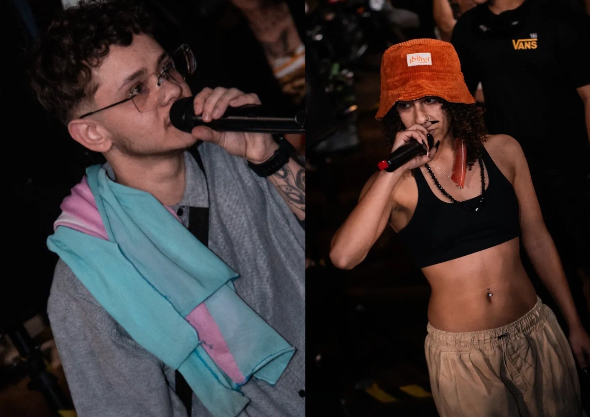 Só que eu achava que eu não fazia parte daquele ambiente, talvez não fosse o meu lugar, tanto por eu ser uma pessoa branca, quanto também por eu não ser um cara cis hétero que vai chegar com uma agressividade que é exigida nesse contexto de batalha. Porque eu me comparava com os outros e achava que não era o meu lugar. Até eu ver pessoas como eu na roda, mandando um freestyle puro, do coração.