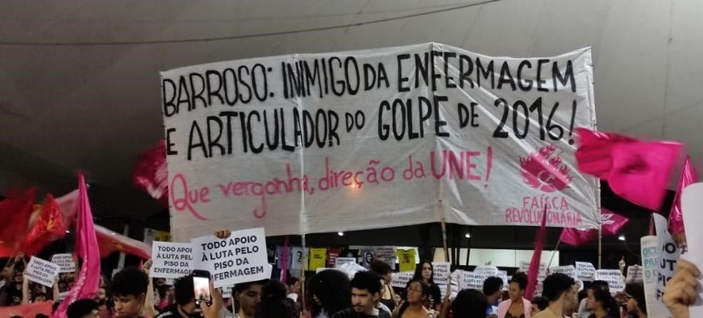 Faixa do Faísca Revolucionária durante o 59º CONUNE. Reprodução: redes sociais.