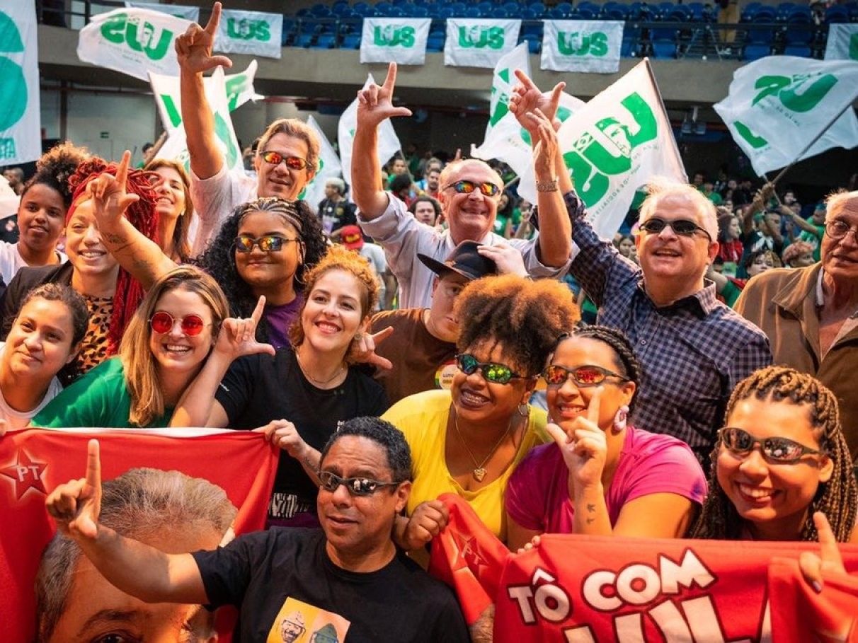 Fernando Haddad (PT), Geraldo Alckmin (PSB) e Márcio França (PSB) no Congresso da UJS (União da Juventude Socialista) em 16 de julho de 2022, em São Paulo. Reprodução/Foto: Redes sociais / Twitter.