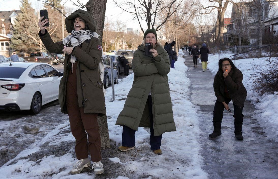 Mulheres gravam enquanto uma delas usa um apito para alertar sobre a presença de agentes federais na região de Minneapolis. Reprodução/Foto: Tim Evans - Reuters.