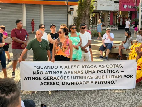 O governador de Santa Catarina sanciona lei que proíbe cotas raciais em universidades e institutos com vínculos públicos. Apesar de agora estar suspensa, a lei é vista como retrocesso social e tentativa de ataque às políticas públicas de reparação.